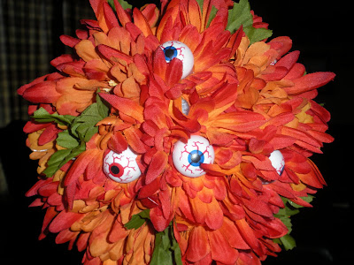 The flowers I got at the Dollar Tree. It took about 5 bunches for EACH topiary! The eyes are bouncy balls that I got last year.... any old eyes will do though! I just started glueing and poking them in!